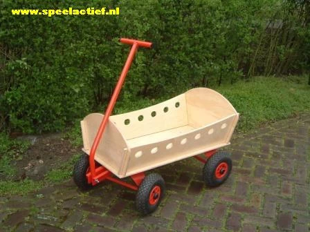 Prachtig vormgegeven bolderkar. Voorzien van luchtbanden en opgebouwd uit blank gelakt beukenhout.