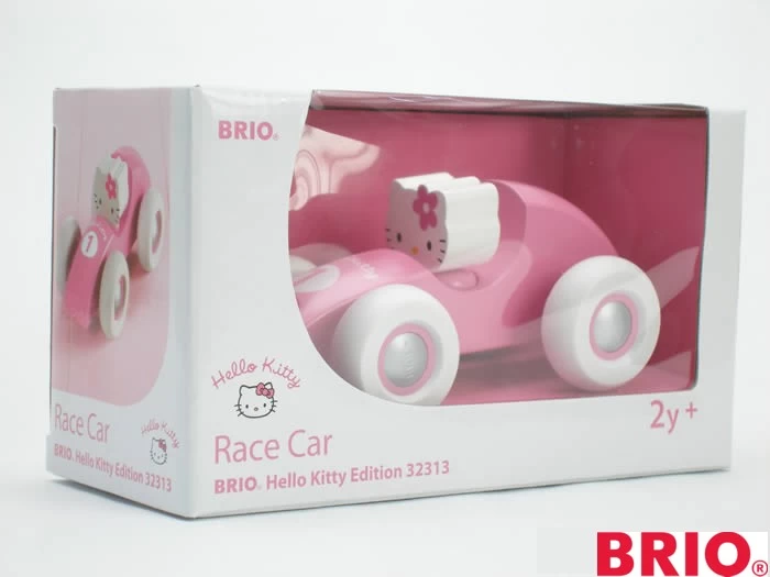 Hello Kitty weet heel goed waar ze naartoe moet in deze supersnelle racewagen. Gebruik je verbeelding.