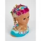Kapkop met blonde haren en accessoire-set . Bestaande uit; borsel, kam, krulspelden kralen en rose haren band