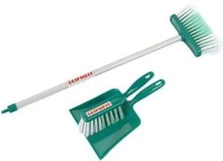 Bezemgarnituur bestaande uit bezem, handveger en blik in Leifheit design. Dus net echt.