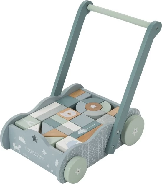 Deze houten blokkenkar van Little Dutch is een feestje voor ieder kind. De kar is voorzien van houten wielen en is gevuld met gekleurde blokjes. De verschillende formaten blokjes stimuleren de ontwikkeling en staan garant voor uren speel- en bouwplezier. Het handvat zit op een ideale hoogte voor peuters en kleuters. Het product is niet om je kindje te leren lopen. Houd er daarom rekening mee dat een kind zelfstandig en vrij moet kunnen lopen voordat hij de blokkenkar gebruikt om mee te lopen. Dit om te voorkomen dat je kind voorover valt en zich bezeert.