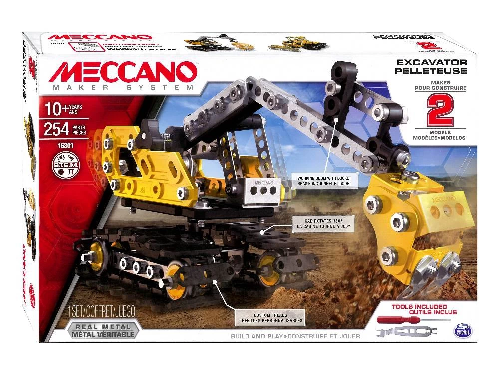 Je kunt 2 modellen bouwen met deze Meccano set. De graaf machine heeft een beweegbare arm! Om te bouwen als bulldozer.