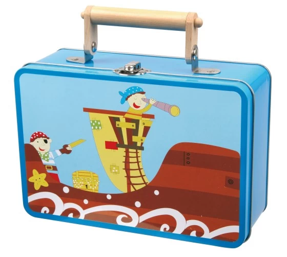 Hihoo, hier komen de piraten! In elk geval eentje dan, want die heeft net dit leuke koffertje gekregen. Op zoek naar de schat: is het linksaf bij de grote boom? Kom op jongens! In het koffertje zitten een stoere piraten hoofddoek, een zwaard, een schat in een fijn bewaarzakje, een touw om boeven (of ouders of elkaar) mee vast te knopen, een schatkaart en een heus werkend kompas en natuurlijk een ooglapje. Het enige dat nog ontbreekt is een schip… Misschien kun je dat zelf bouwen van een paar stoelen?