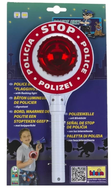 Zet als kleine politieman  je vriendjes aan de kant met dit stopteken met licht. Het flitsende knipperlicht maakt direct duidelijk dat je er gloeiend bij bent. Dit politiestopbord biedt inspiratie voor eindeloos speelplezier.
